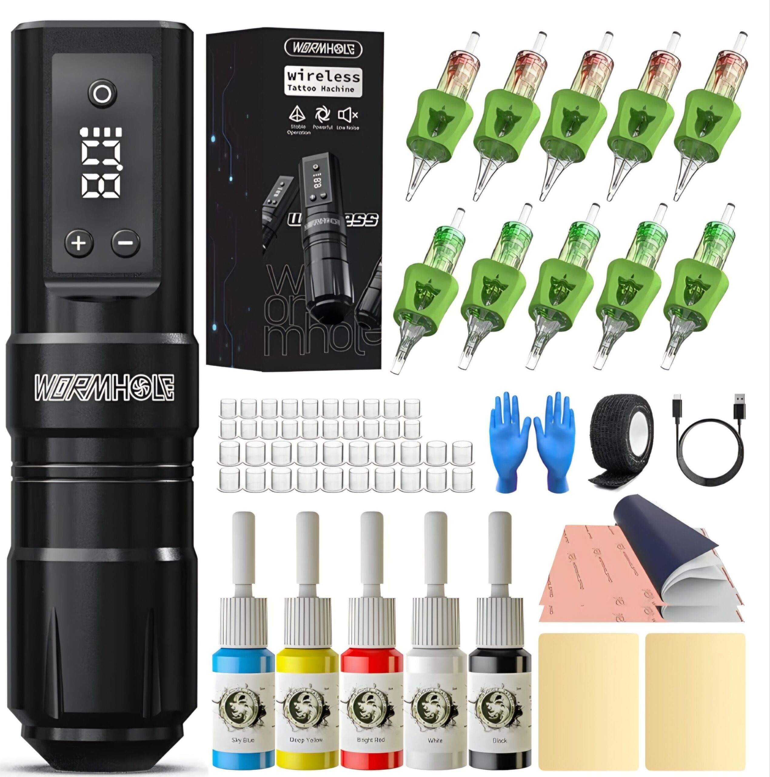 - Complete Tattoo Kit: This tattoo kit includes 60 pieces, featuring a compact aluminum alloy tattoo gun, high-quality tattoo ink, 10pcs tattoo needles, and essential accessories for both beginners and seasoned artists. Enjoy everything you need in this tattoo kit