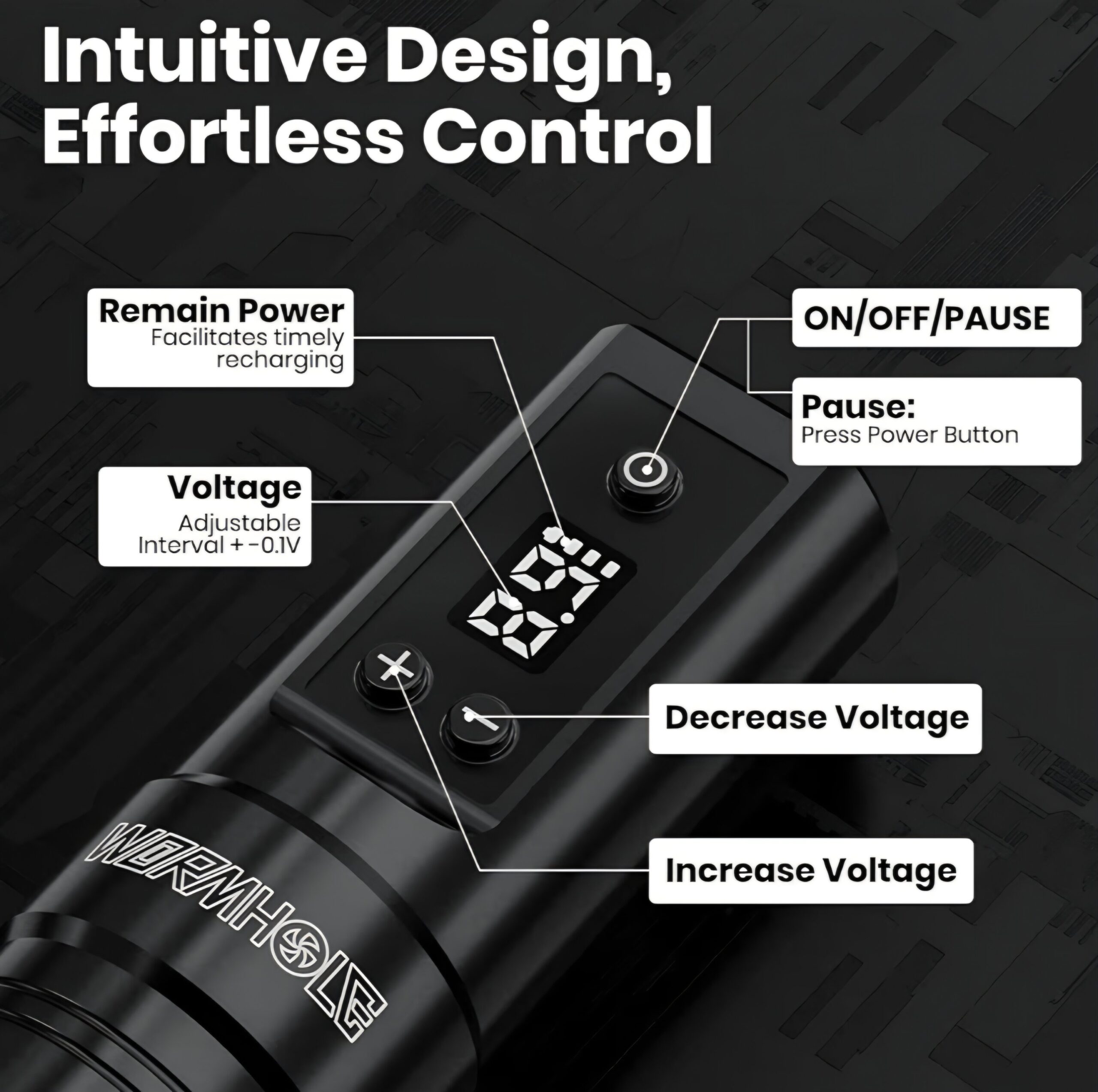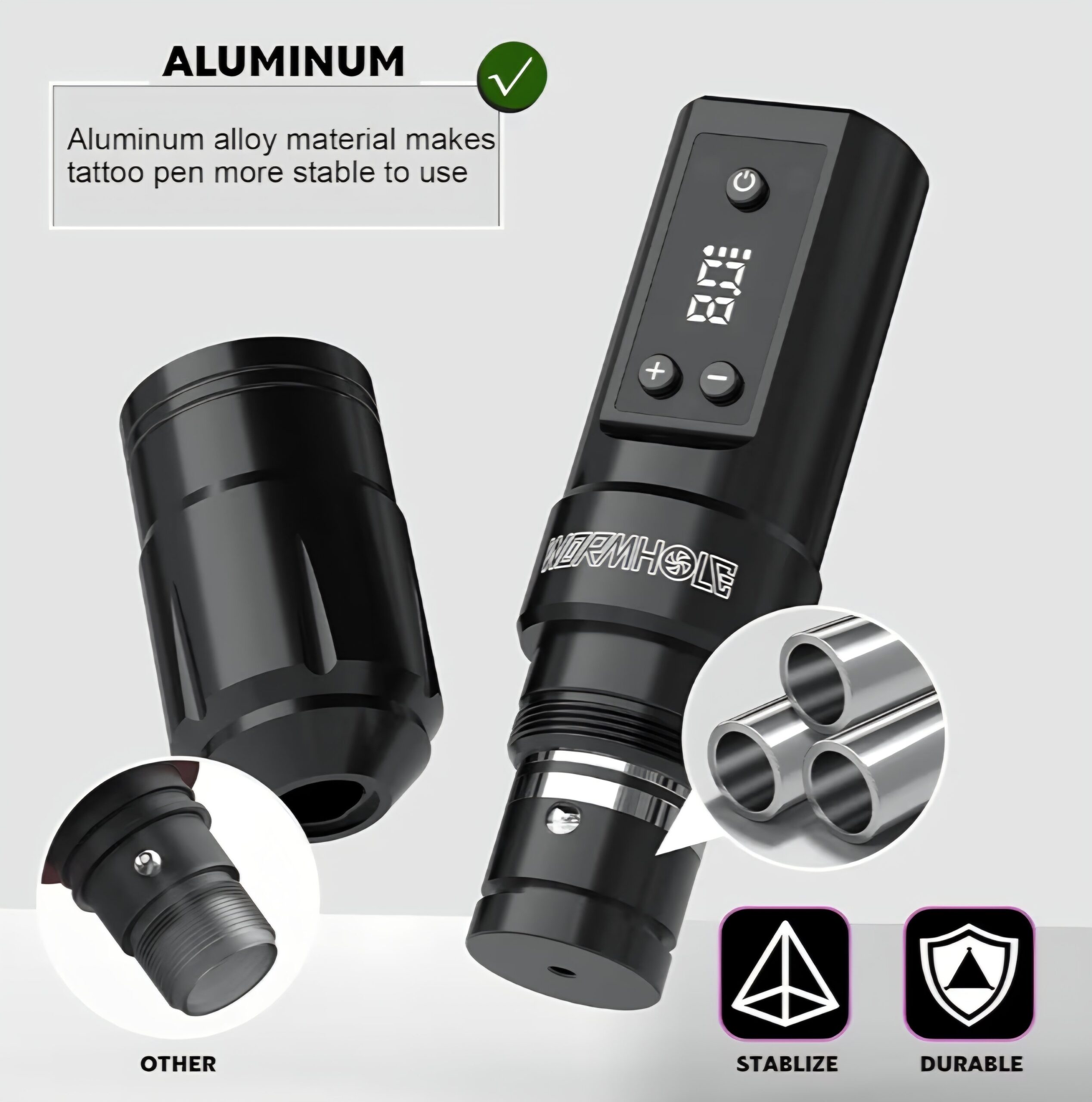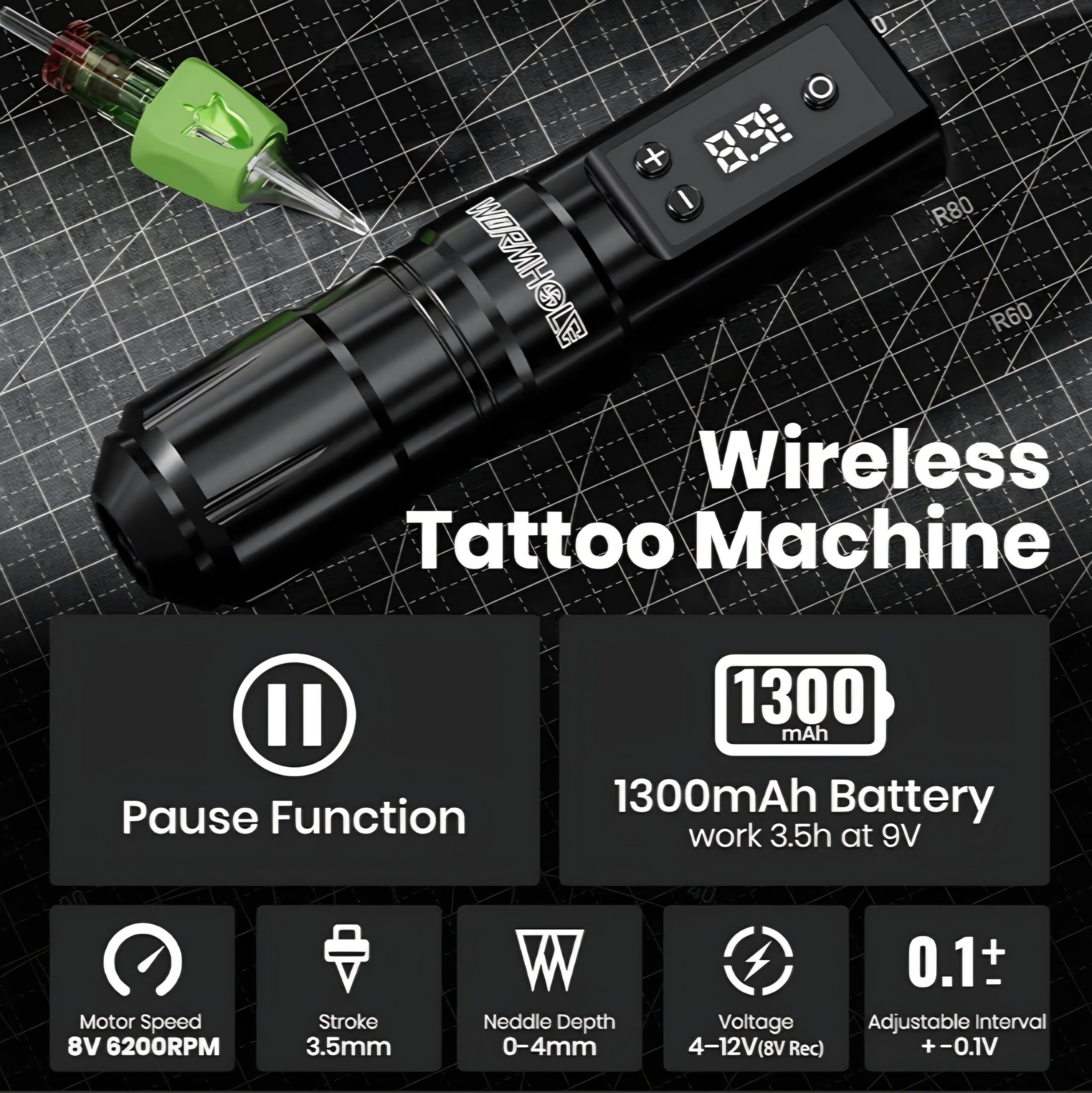 - Excellent Experience: You can observe the working voltage and remaining power in time through the LED display of the tattoo pen; Voltage can be adjusted in small increments of 0.1V to 4-12V; Stroke: 3.5mm; Needle depth: 0-4mm; The tattoo machine has a pause function, and the tattoo gun will be shut down automatically if there is no activity for 5 minutes