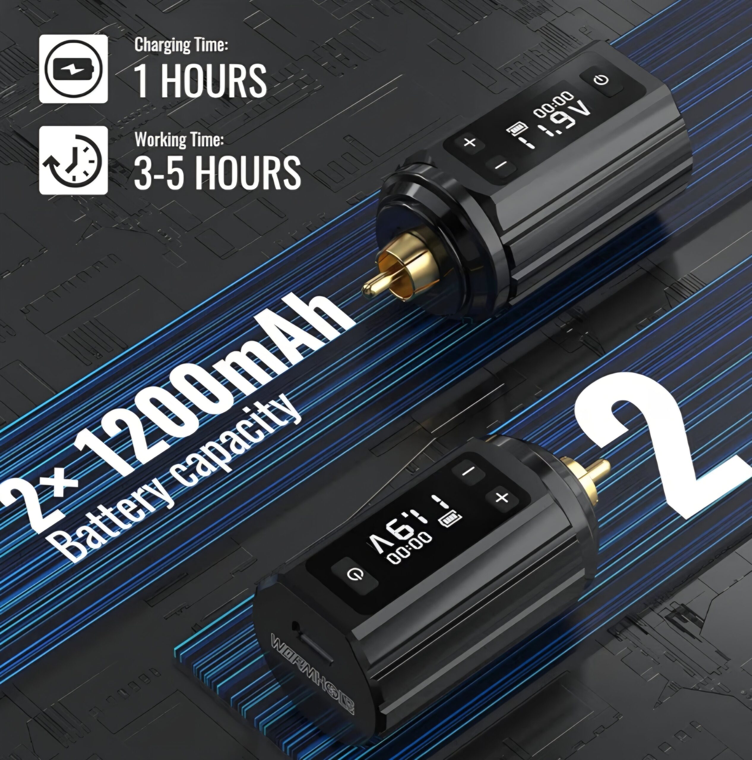 - DUAL WIRELESS POWER SOURCES: The tattoo kit includes two independent 1,200 mAh wireless power units, ensuring continuous operation without downtime; Artists can seamlessly switch between batteries, maintaining workflow and productivity without the hassle of cord management or waiting for recharges